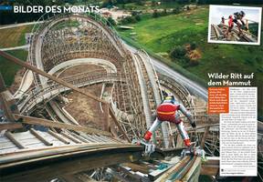 Weltpremiere! Dirk Auer befährt mit freistehenden Skates die Holzachterbahn Mammut in Tripsdrill